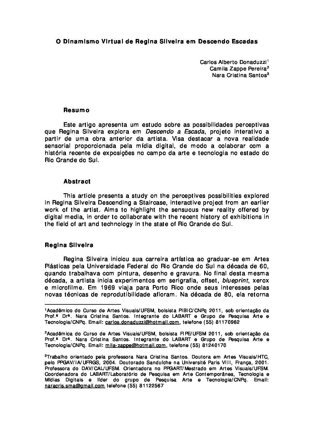 Por Giovanna Graziosi Casimiro, Carlos Alberto Donaduzzi e Nara Cristina Santos. O Dinamismo Virtual de Regina Silveira em Descendo Escadas Disponível em: https://files.cercomp.ufg.br/weby/up/779/o/10art_NaraSantos.pdf,Baixar