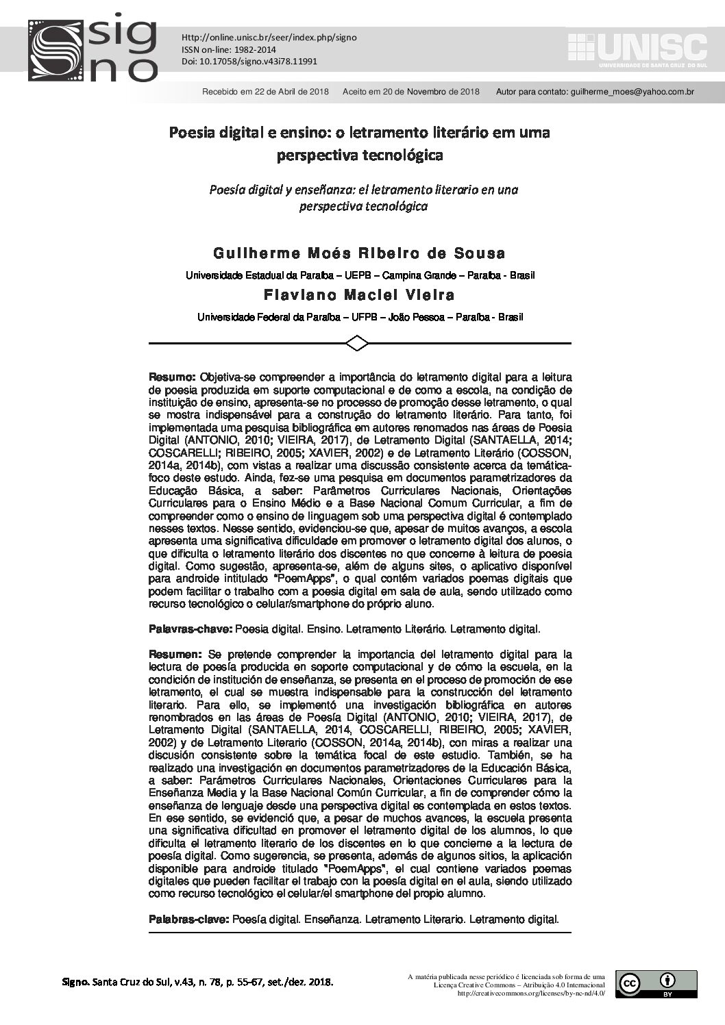 GAB MARCONDES é poeta, artista visual e mestre em música pela UFRJ com a dissertação “Poesia Sonora: entre o som e a palavra”. Em setembro de 2006 lançou pela editora 7letras seu primeiro livro “Videoverso: poesia que lê vendo; que se vê lendo”, livro partido ao meio entre a poesia e poemas visuais. O segundo livro, “Depois do vértice da noite”, veio pela mesma editora em 2010, o terceiro livro “Em caso de emeregência pare o tempo” foi lançado em 2015 pela editora Circuito. Transbordando as linhas do papel, seu trabalho se expande para vídeo-poemas, poemas sonoros, aplicativos poéticos e, atualmente, objetos poéticos. (MARCONDES,Gab. Sobre. Inutensílios poéticos. Disponível em: https://inutensiliospoeticos.com/sobre/#:~:text=Gab%20Marcondes%20%C3%A9%20poeta%2C%20artista,a%20poesia%20e%20poemas%20visuais. Acesso em 24. Mar.2021). BRUNO CALDAS VIANNA (Rio de Janeiro, Rio de Janeiro, 1971). Cineasta, artista multimídia, educador. Possui graduação em cinema pela Universidade Federal Fluminense (UFF). Entre 1997 e 1999, realizou o mestrado pelo Interactive Telecommunications Program, da New York University, nos Estados Unidos. Realizou curtas e longas-metragens. Dentre eles, o curta Geraldo Voador (1994) , premiado em dez festivais nacionais e internacionais. Seu longa Ressaca (2008) conquistou quatro prêmios no Festival de Cinema de Porto Alegre: melhor longa-metragem; melhor longa-metragem pelo júri popular; melhor ator, para João Pedro Zappa (1988); e prêmio da nova crítica. Em 2000, desenvolveu o projeto Palm Poetry, na área de computação portátil da Universitat Pompeu Fabra, em Barcelona, Espanha. Sua obra Translucid Web foi selecionada para o festival Pixilerations, na cidade de Providence, Estados Unidos. Em 2007, exibiu o projeto de realidade aumentada Invisíveis, no festival arte.mov. Em 2008, recebeu prêmio do festival Memefest por FluidNexus, trabalho realizado em coautoria com Nick Knouf. Em 2010, recebeu o prêmio Vida 13.0 da Fundación Telefónica, na categoria Incentivos à Produção, por Liquid Satellite Garden, projeto desenvolvido no centro de artes Laboral, em Gijón, na Espanha. É gestor do Nuvem, centro rural de arte e tecnologia. No Rio de Janeiro, atua como educador em Oi Kabum! – Escola de Arte e Tecnologia. (BRUNO Vianna. In: ENCICLOPÉDIA Itaú Cultural de Arte e Cultura Brasileiras. São Paulo: Itaú Cultural, 2021. Disponível em: <." target="_blank" title="http://enciclopedia.itaucultural.org.br/pessoa16001/bruno-vianna>.">http://enciclopedia.itaucultural.org.br/pessoa16001/bruno-vianna>. Acesso em: 24 de Mar. 2021. Verbete da Enciclopédia).